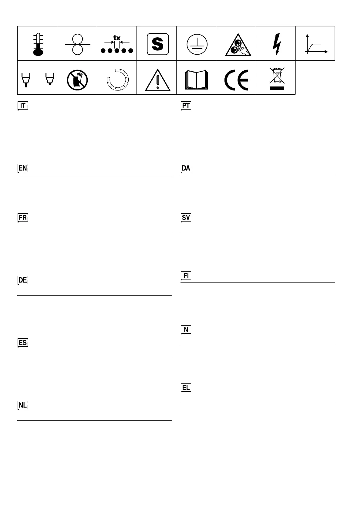 elettriche •5 Terra di protezione •6 Pericolo, organi in movimento •7 Tensione peri-