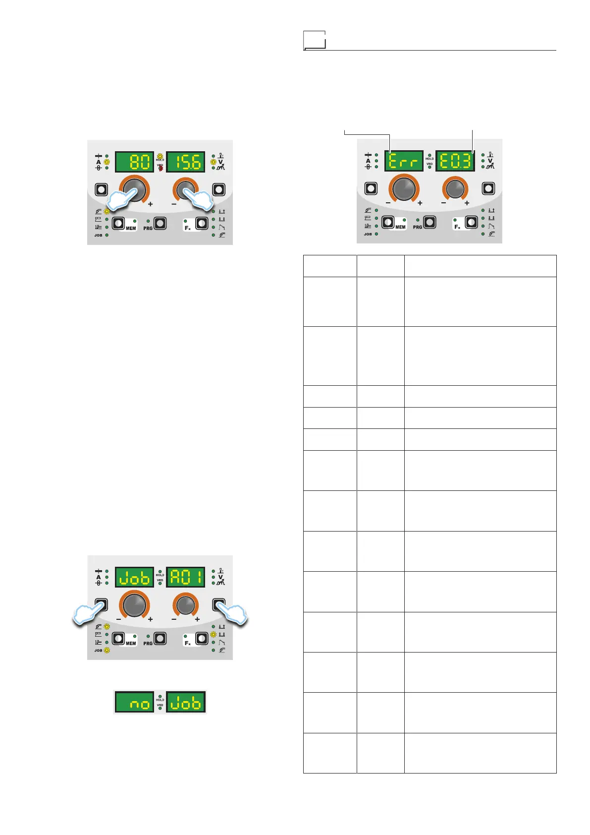 the welding machine, the codes and messages shown on both op-