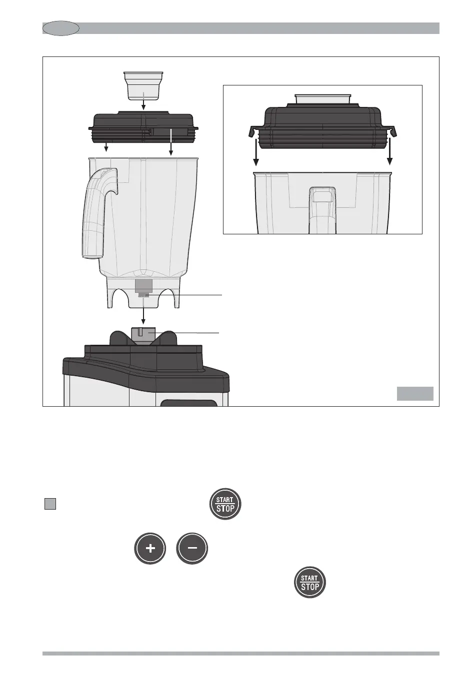 Accionar el motor pulsando el botón manteniendo una mano en la tapa (Fig. 6) (solo