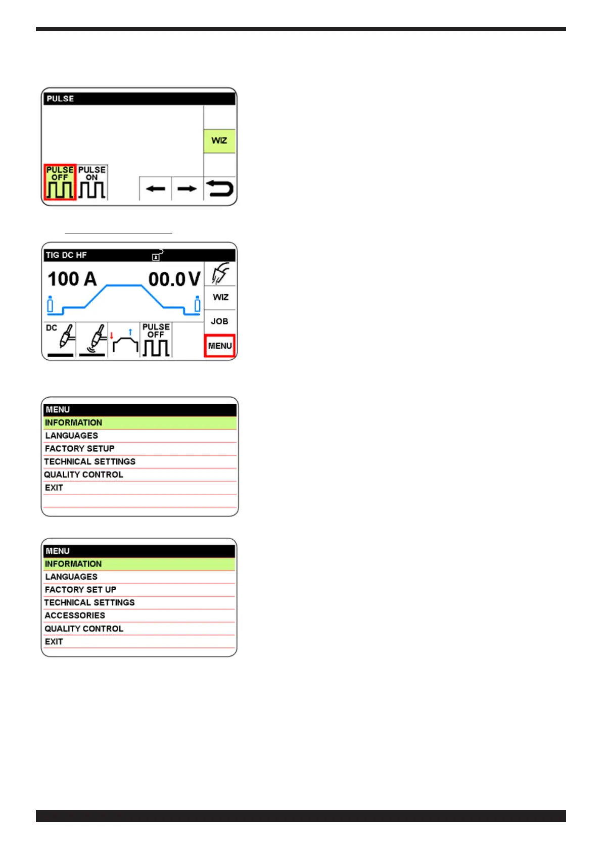 Wählt man PULSE OFF, erscheint der Hauptbildschirm. Wählt man