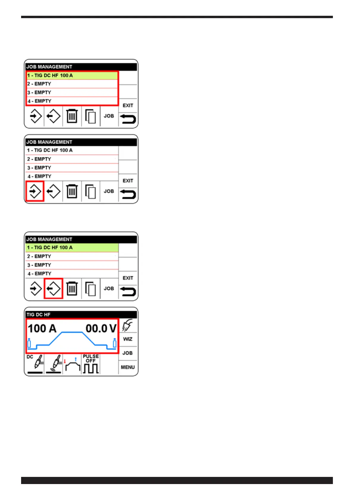 ♦ Entrer dans le menu JOB tel que décrit dans le paragraphe 7.3