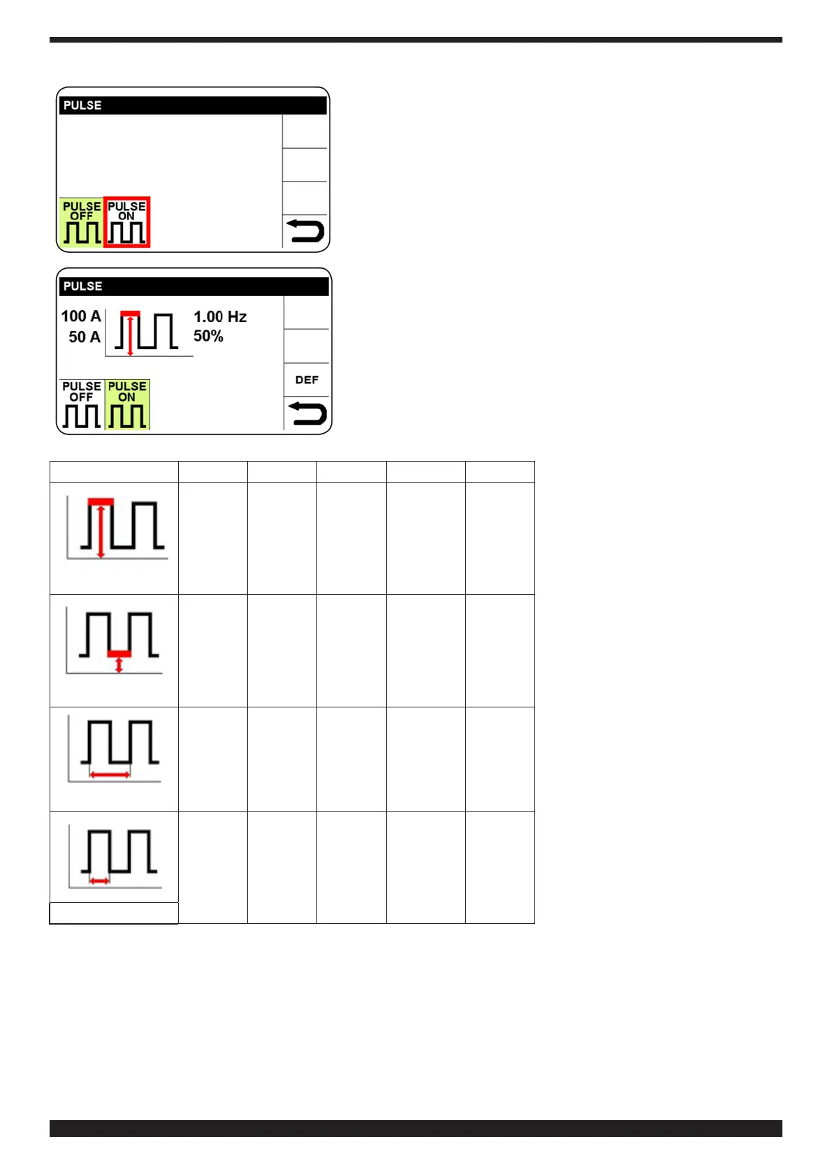 Selecione e conrme PULSE ON para aceder à conguração dos