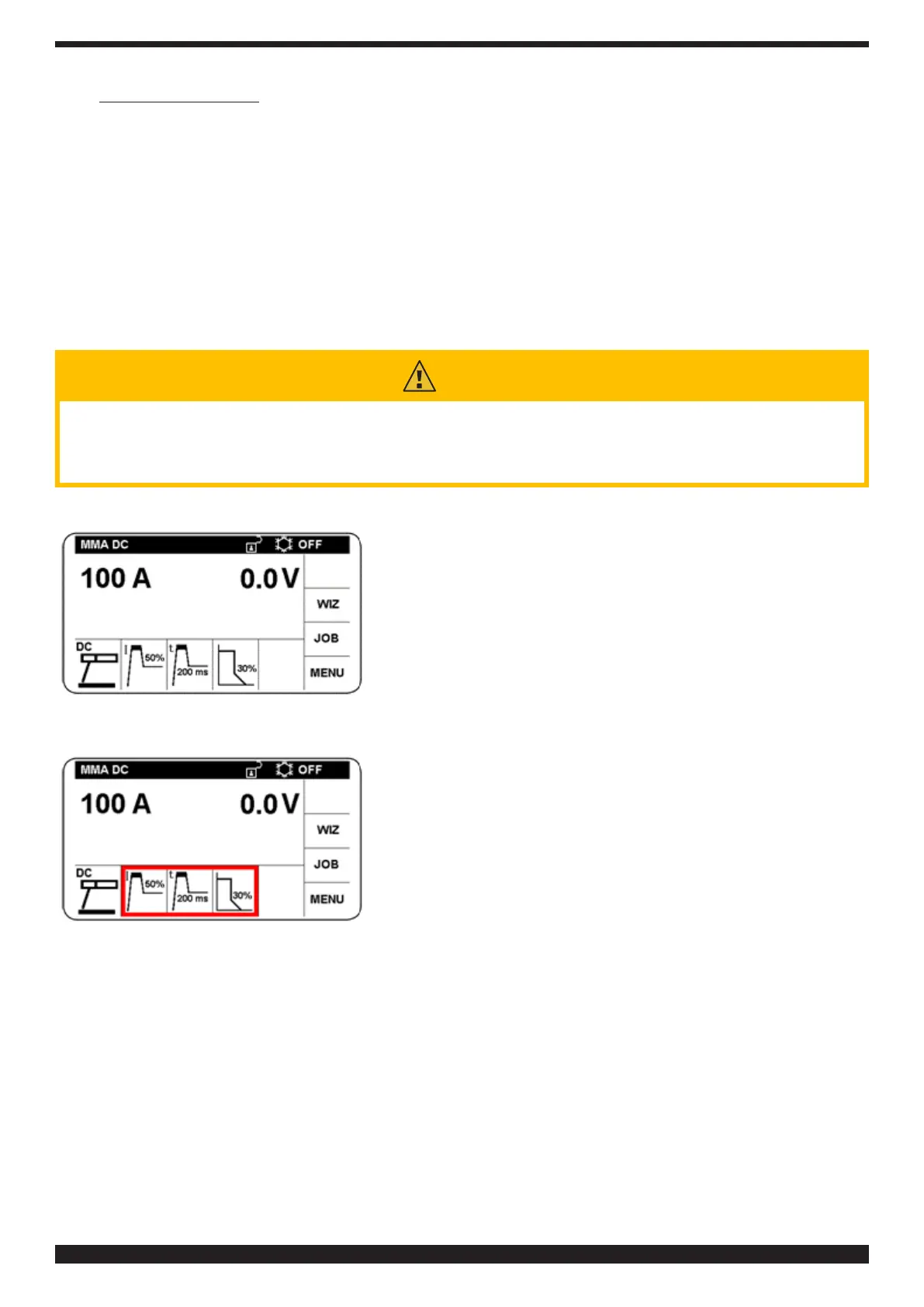♦ KUUMAKÄYNNISTYSVIRTA,jonkasäätöalueon0–100%hitsausvirrasta(kyllästyminensuurimmallavir-
