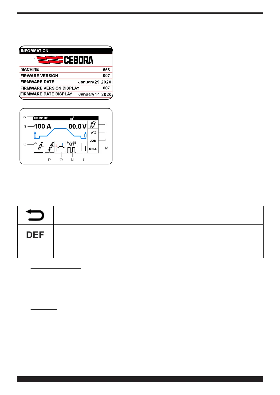 Ved tænding viser displayet alle informationer om svejseapparatets