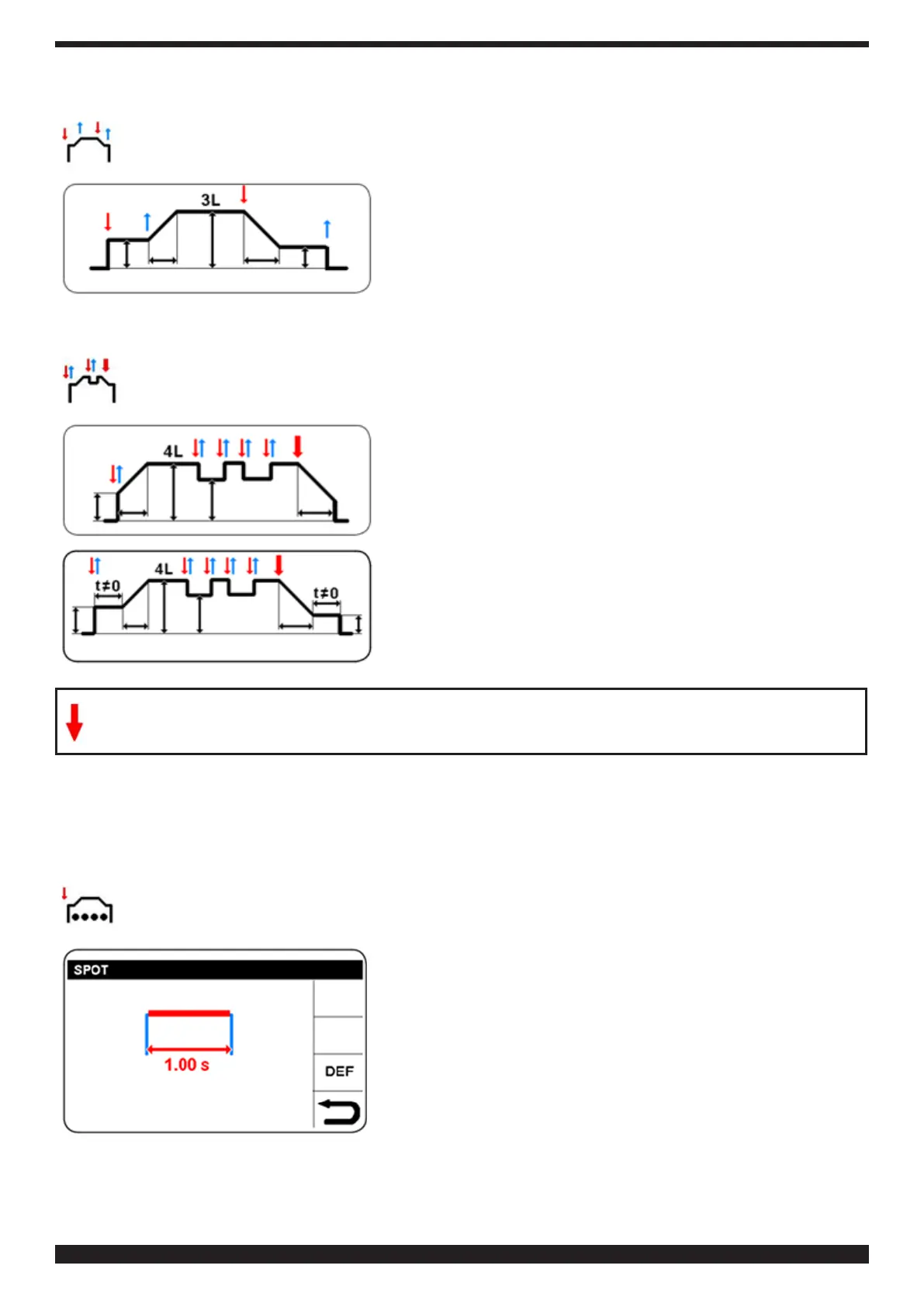 Dit symbool betekent dat de lastoortsknop langer dan 0,7 s ingedrukt gehouden moet worden om het