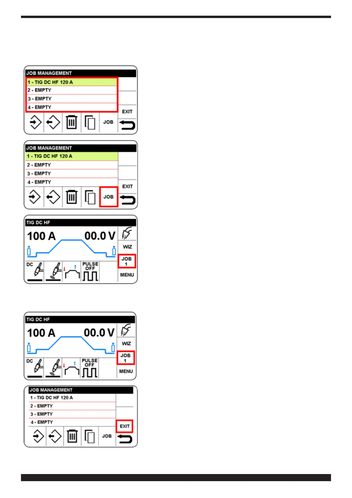 Gå till menyn JOB enligt beskrivningen i avsnitt 11.1.