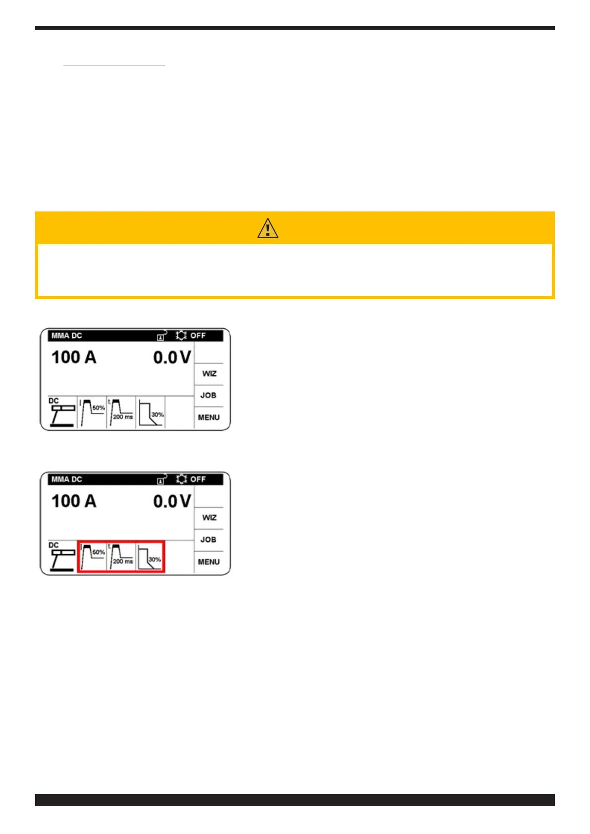 Conrmation enables access to the following welding parameters: