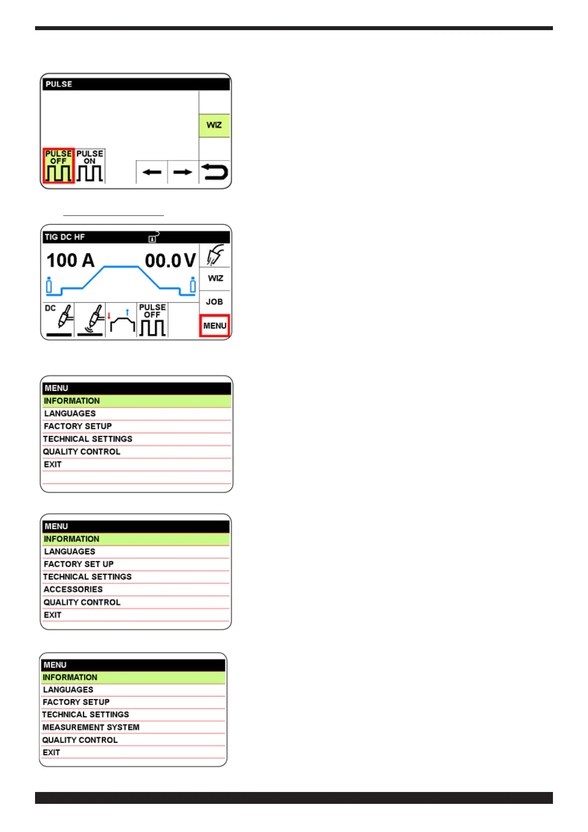 Cebora 553 - Information; Menu (Sector M); Setting for Pulse Welding (See Section 5.5)