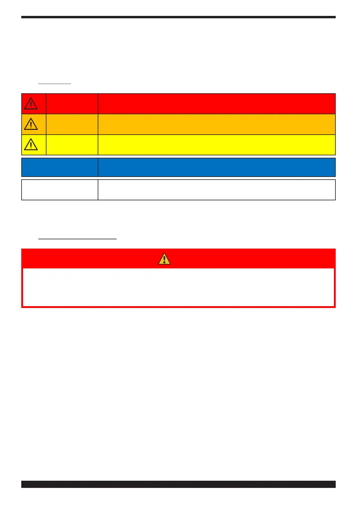 Die Farbe des Felds gibt an, um welchen der folgenden Arten von Hinweisen es sich handelt: GEFAHR, WARNUNG,
