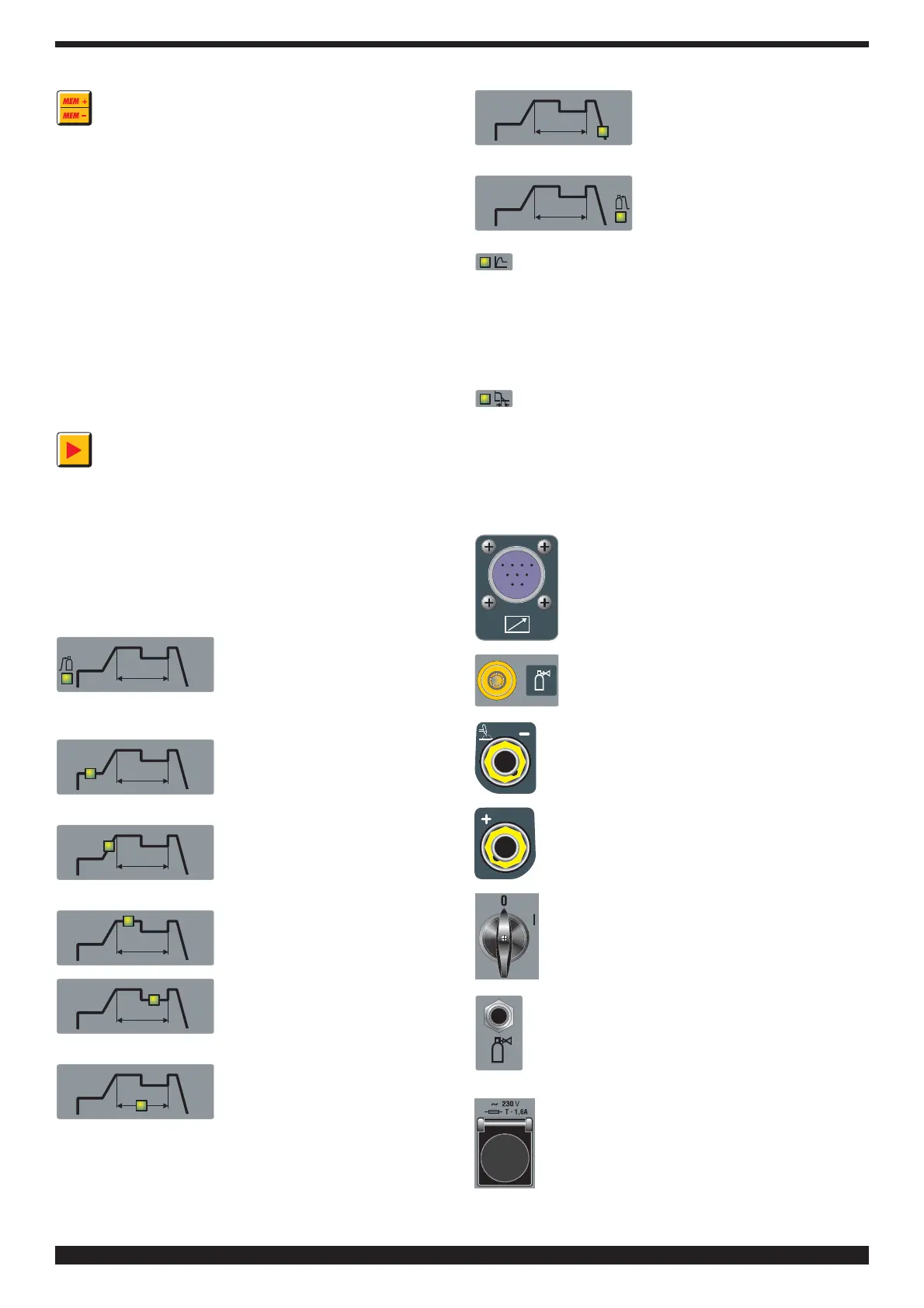 op de gekozen manier van; b.v. bij continu TIG-lassen gaat