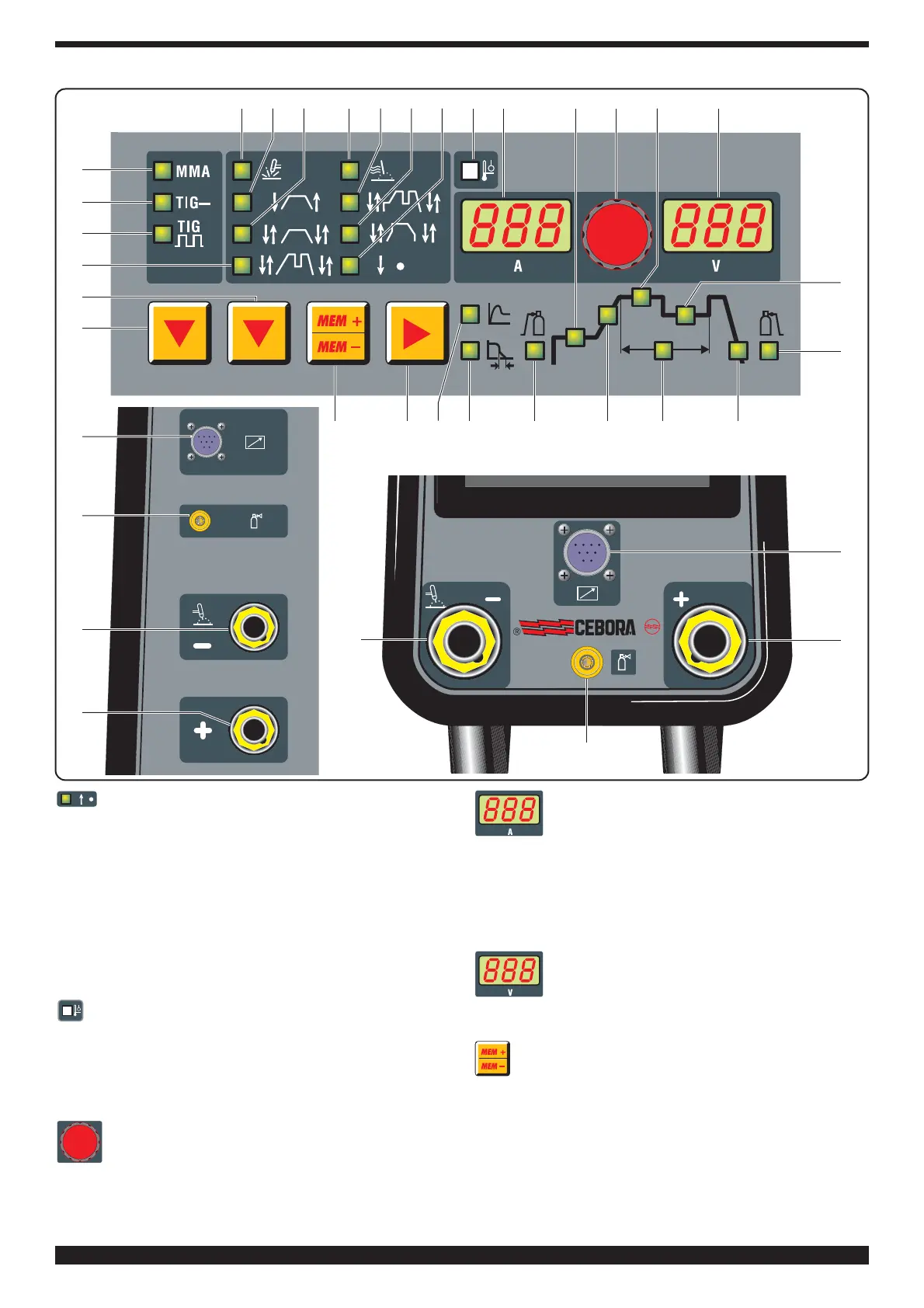 Svetsen kan lagra nio svetsprogram P01…..P09