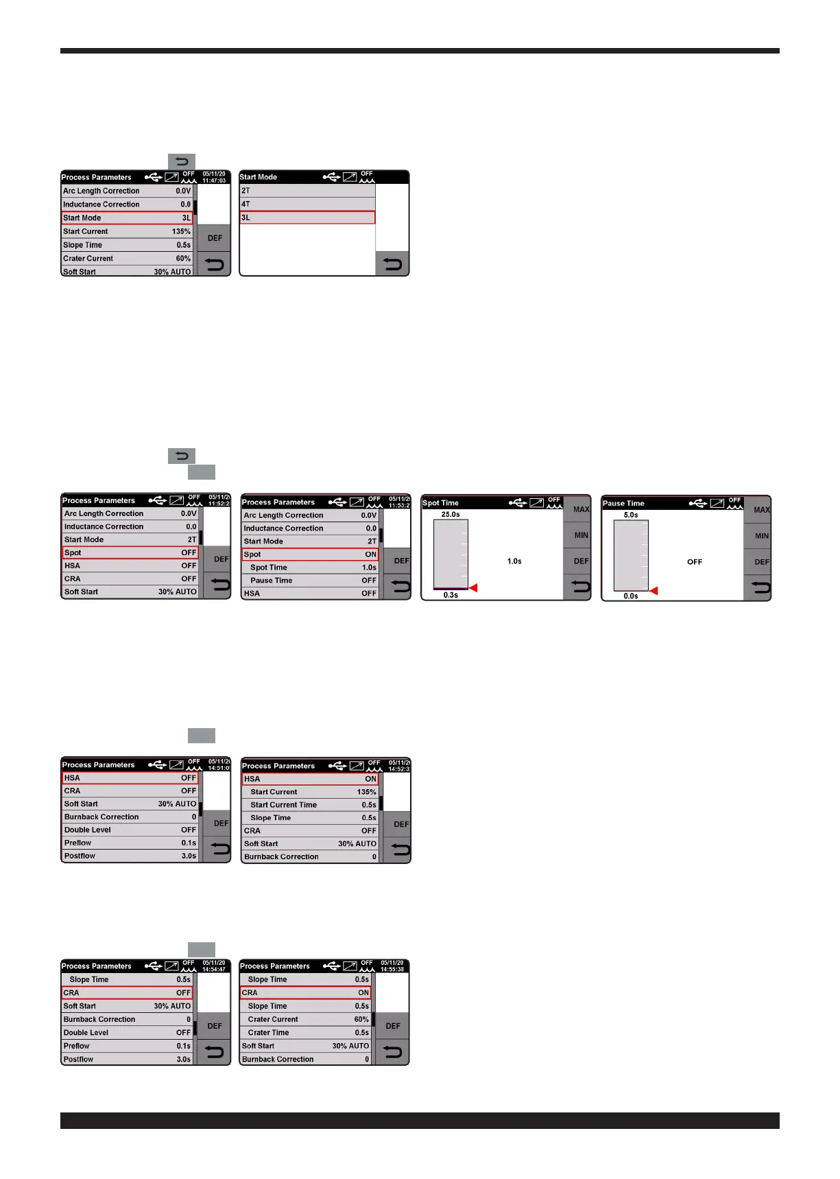 do. Per la regolazione di questi parametri vedi il capitolo Start Mode.