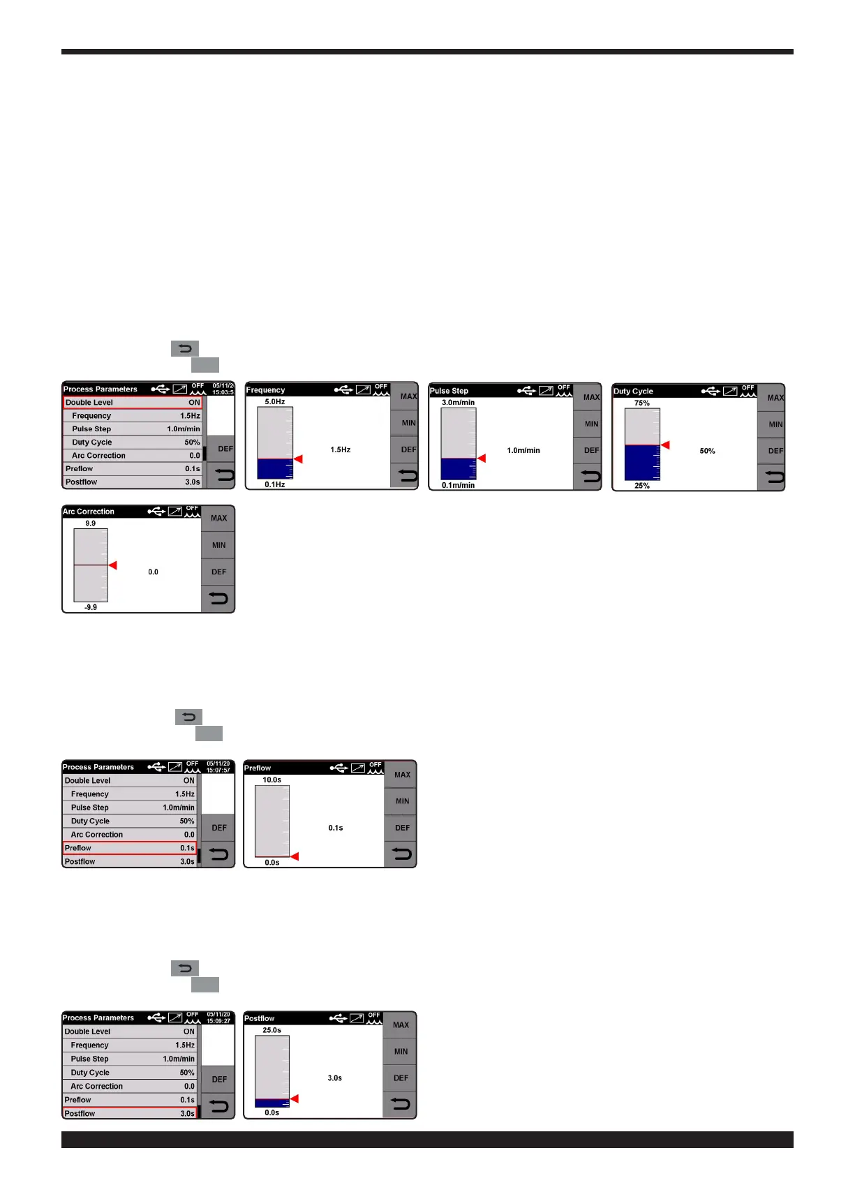 Correzione d’arco� Regola la lunghezza dell’arco della velocità/corrente maggiore.