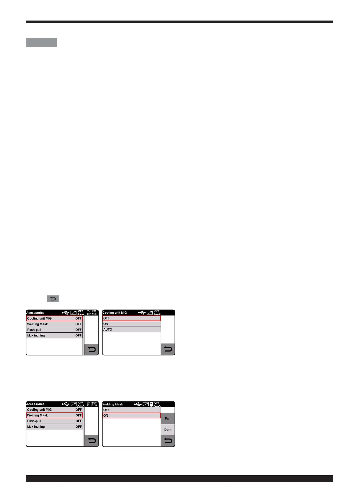saldatura, attivare la funzione sul display del generatore mettendo su ON e accoppiare via Bluetooth la maschera