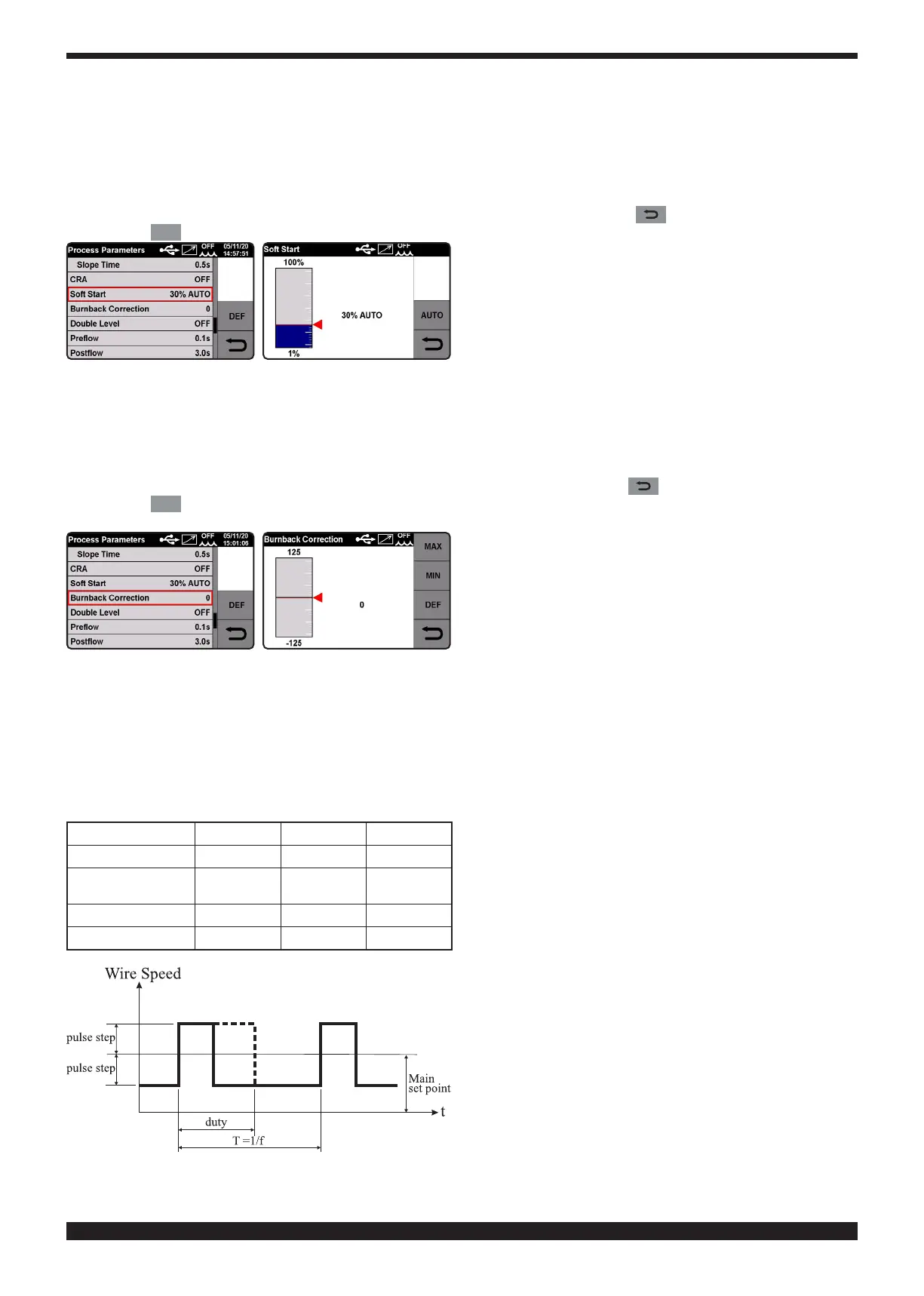 Active in synergic MIG/MAG processes only. This type of welding varies the current intensity between two levels.