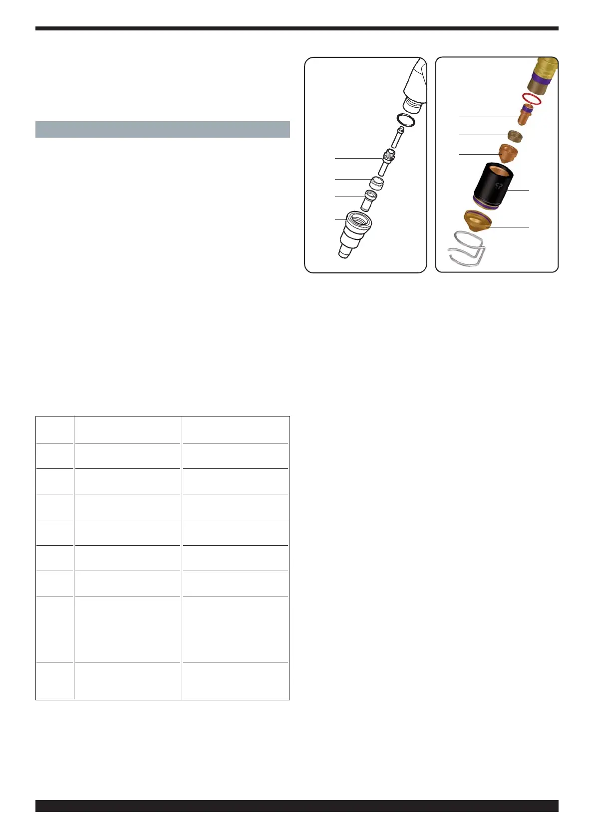 Kulutusosia ovat elektrodi A, diffuusori B, suutin C ja