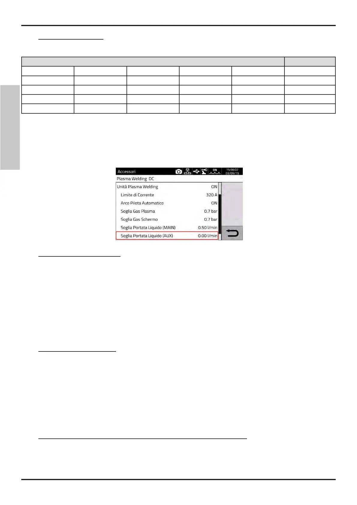 TIG: MENU -> Accessori -> Soglia Gas Plasma�