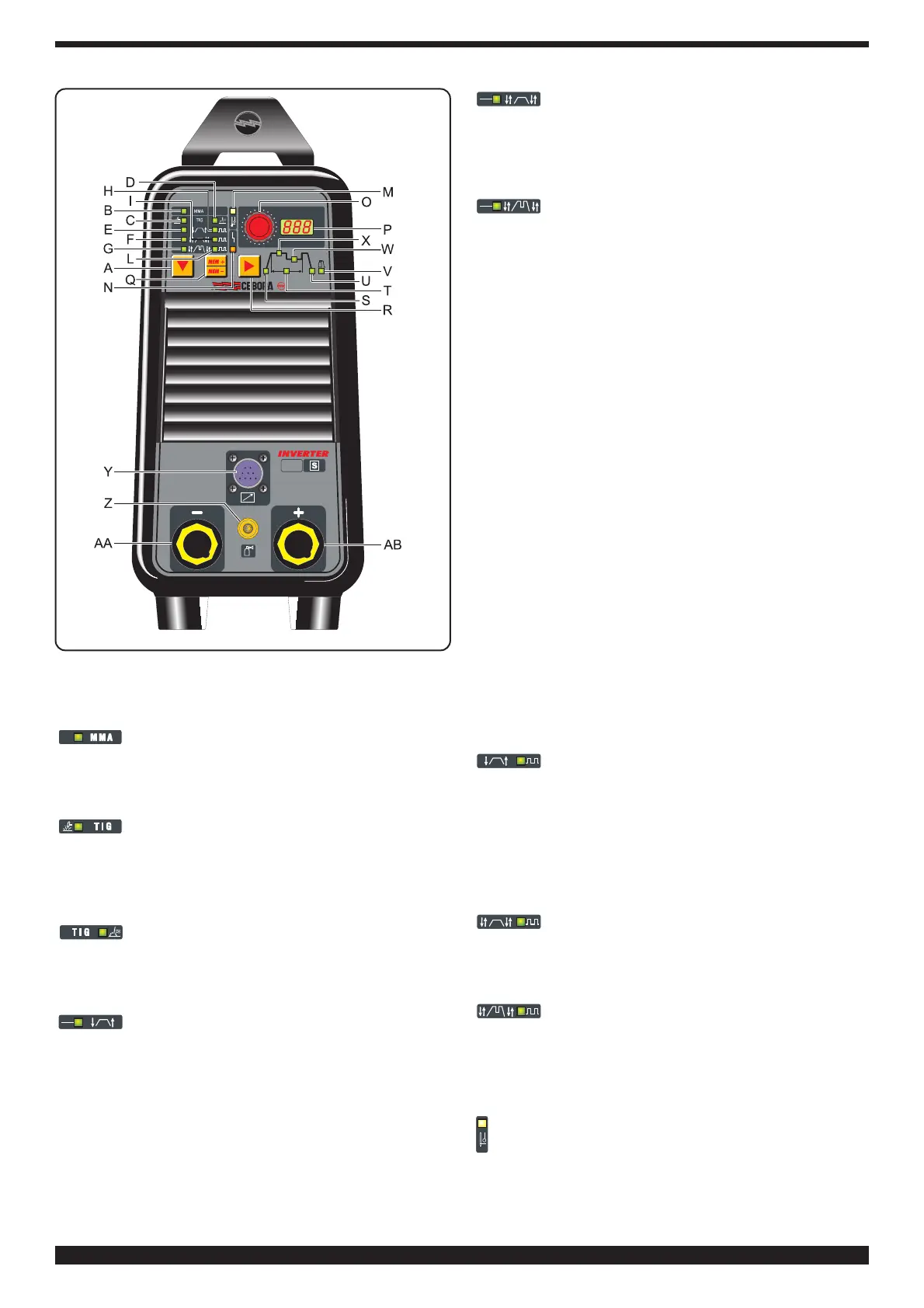 B - LED. MMA welding (Manual Metal Arc)
