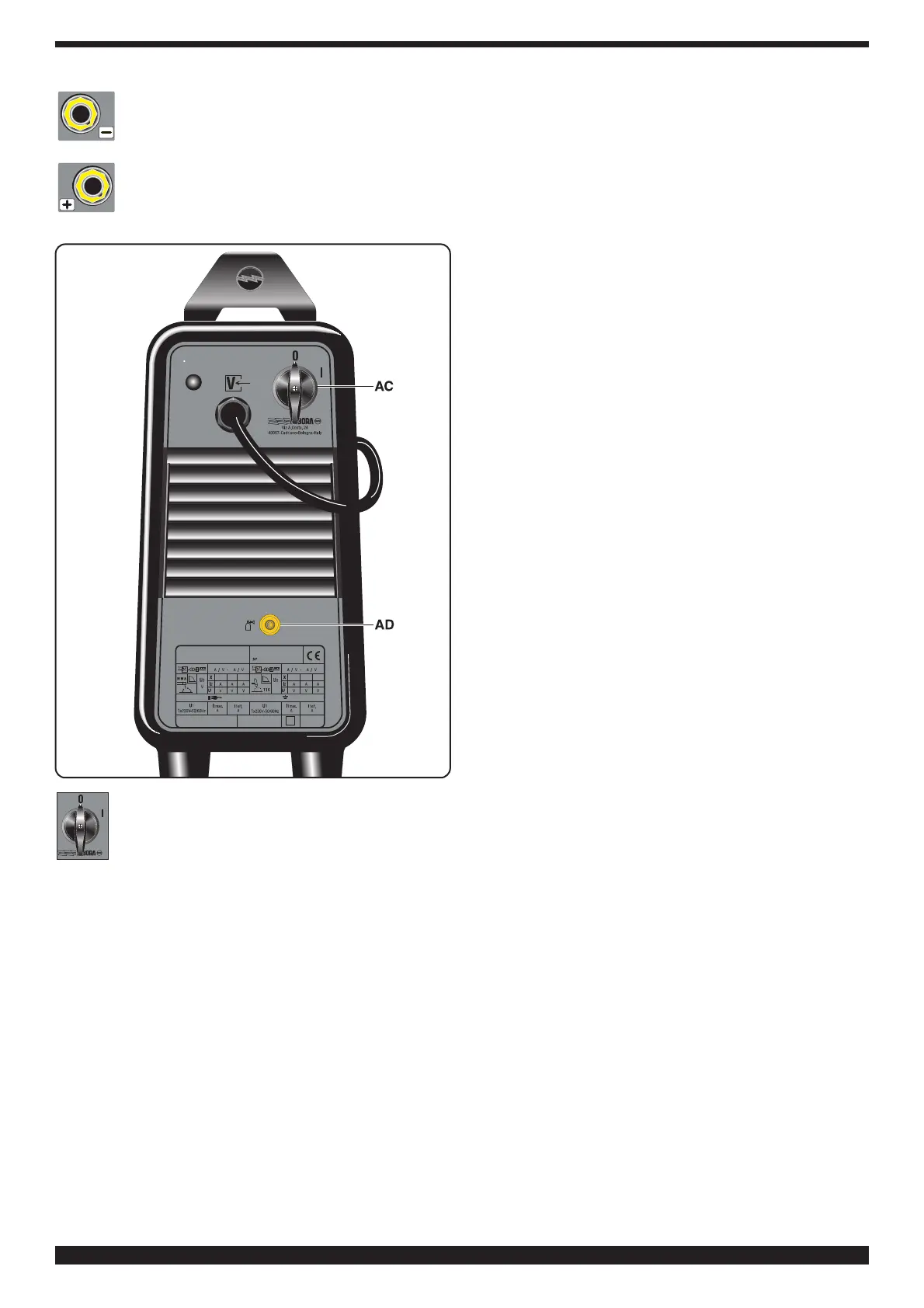 0, a continuación conectar los cables de soldadura res-