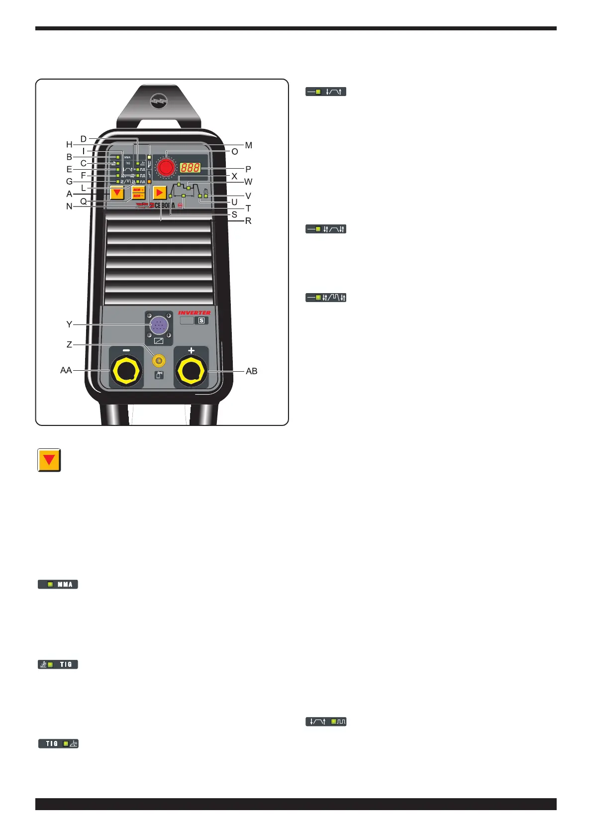 I denne position er kun håndtag O til indstilling af svejse-