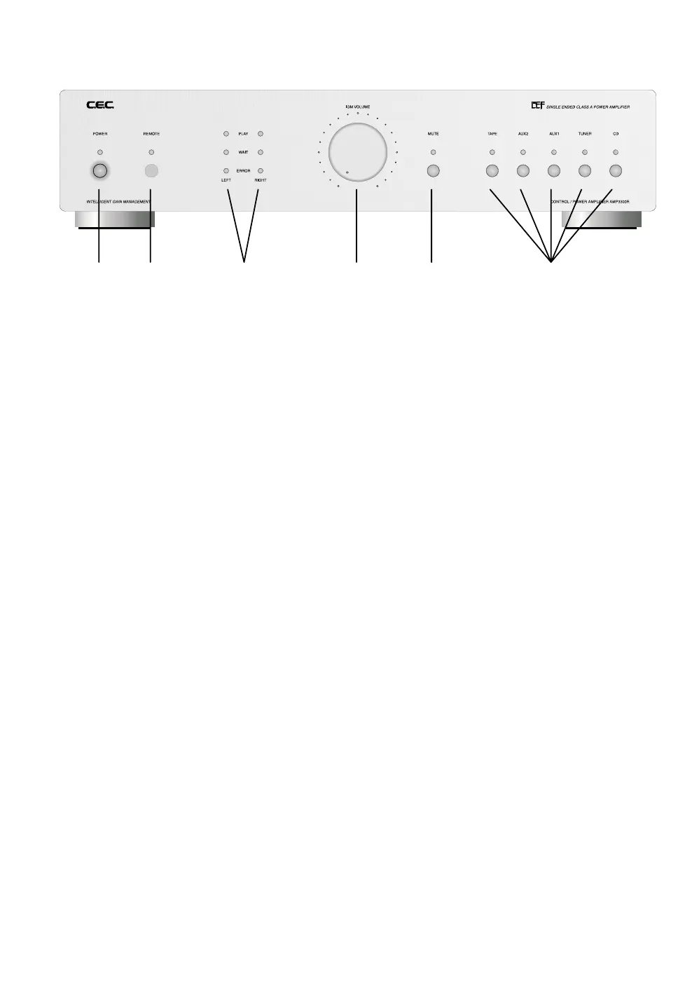 Minimum volume is not absolute silence, due to AMP3300R‘s special gain manage-