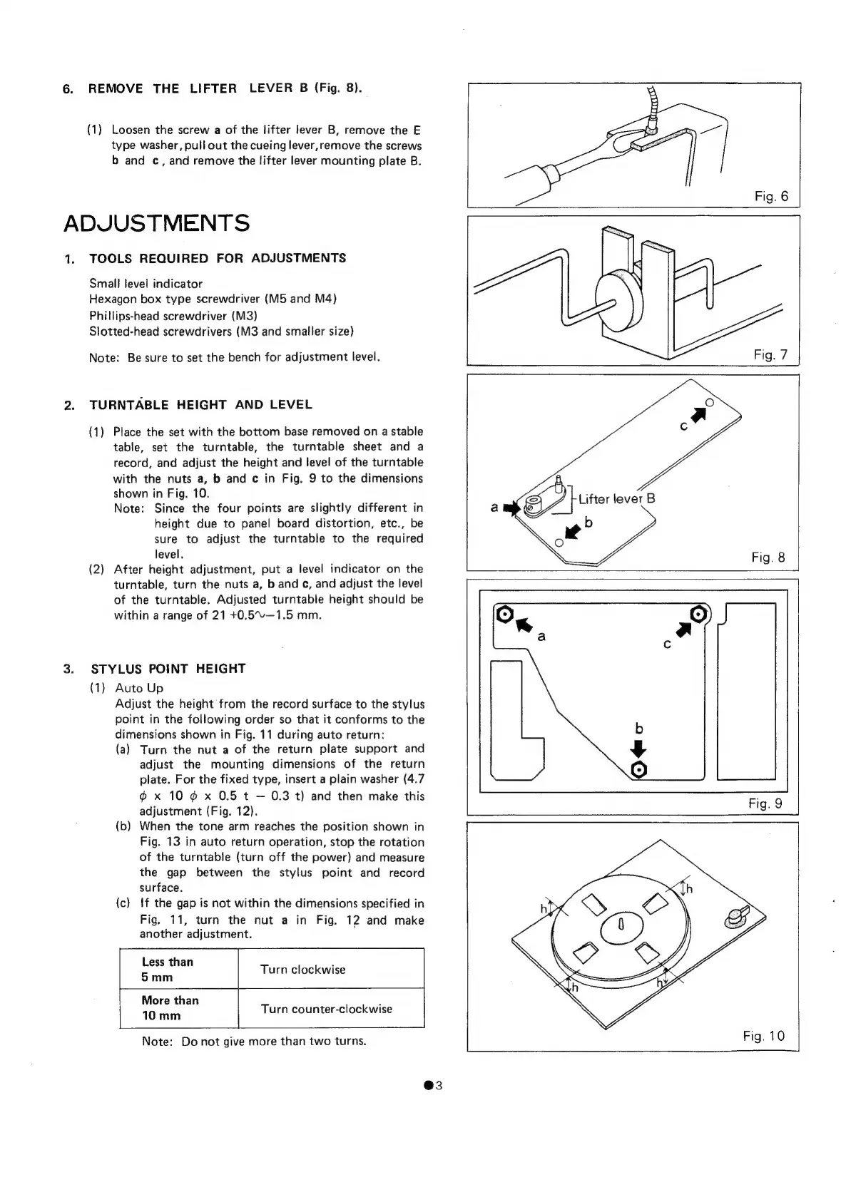 cec BD-3200 - Turntable Height and 3-3 Stylus Point Height; Adjustments; Tools Required