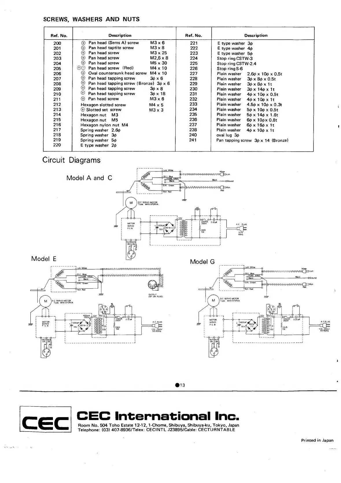 cec BD-5200 - Screws, Washers, and Nuts; Circuit Diagrams