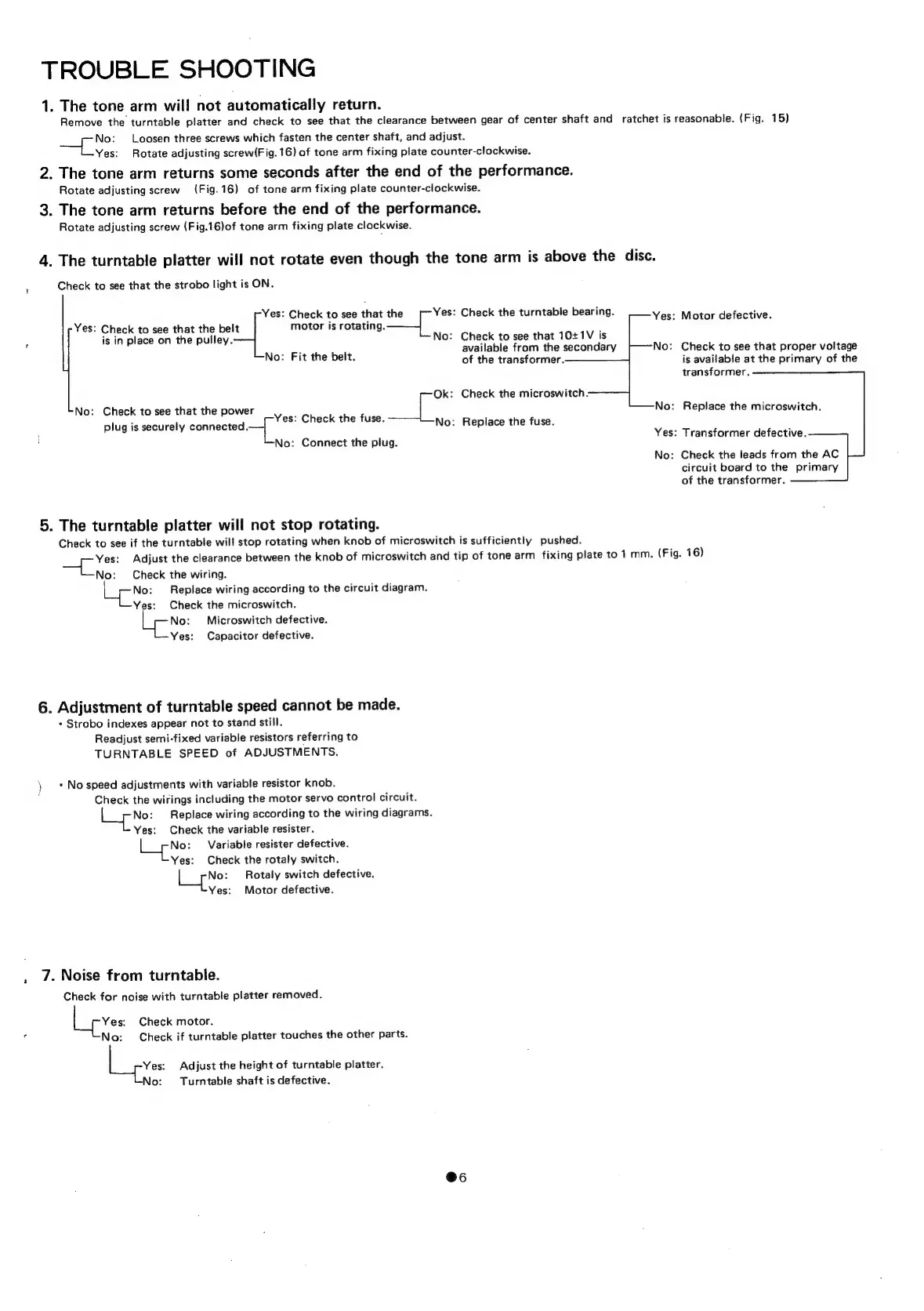 cec BD-5200 - Troubleshooting; Tone Arm Fails to Auto Return; Tone Arm Returns Late; Tone Arm Returns Early