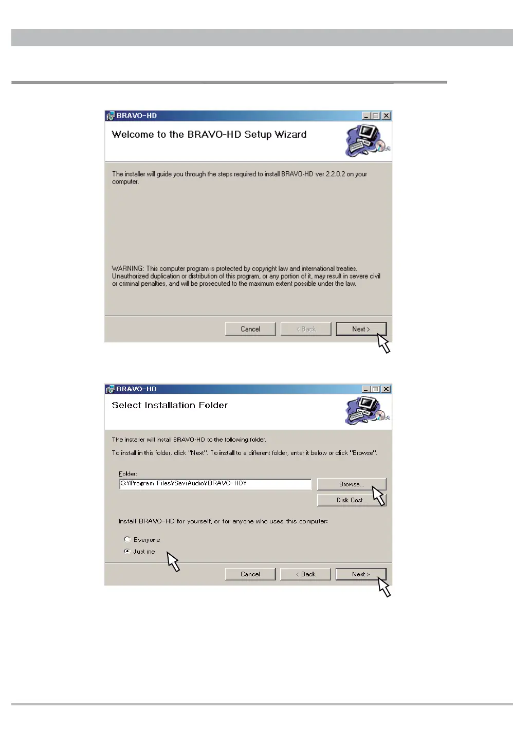 Select "Everyone" for all Windows users to use BRAVO-HD or "Just me" only for