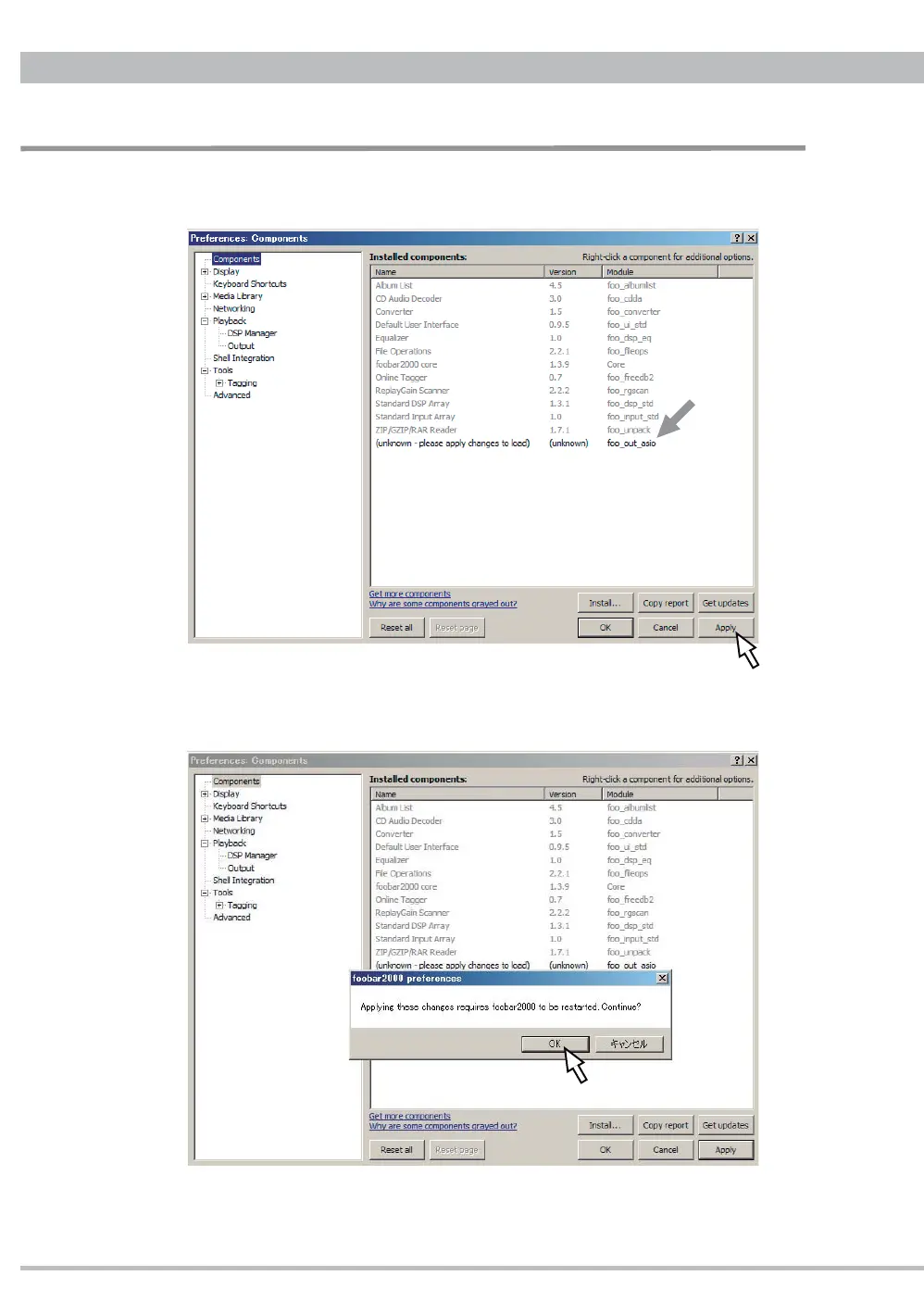 2.5. The installing component "foo_out_asio" will be listed up marked with (unknown).