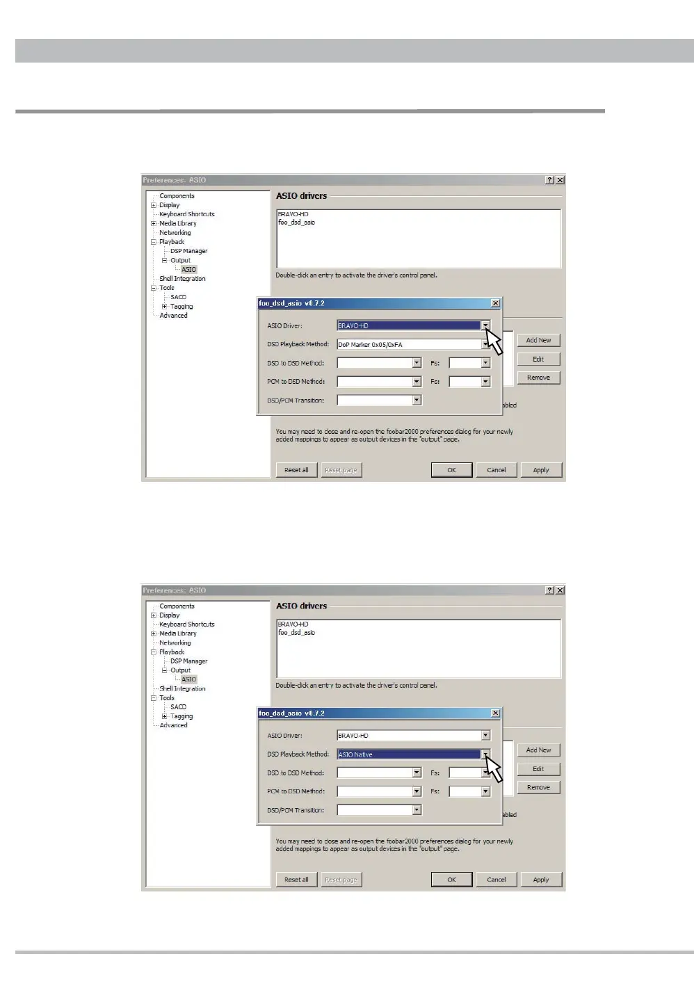 cec DA5 - Configure foo_dsd_asio Settings; Select ASIO Driver in foo_dsd_asio; Set DSD Playback Method