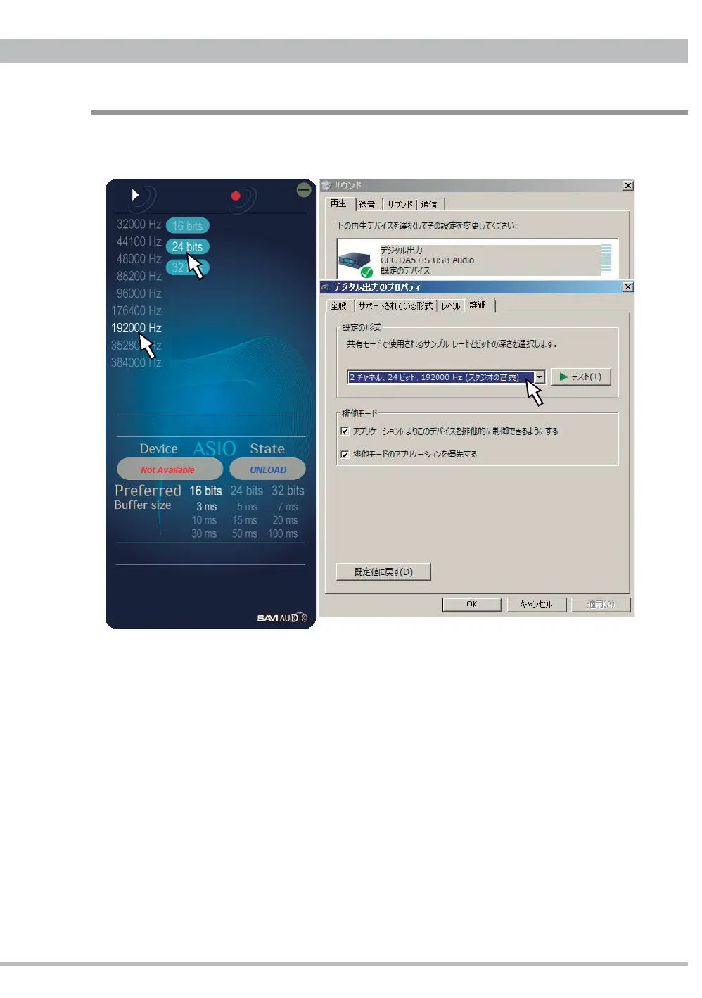 Note: Setting 352.8kHz or 384kHz the sound from ex. an internet browser may be unstable