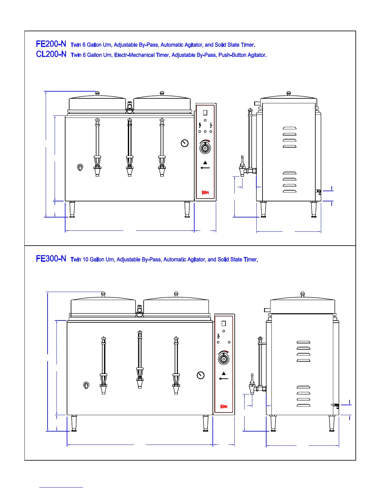 Cecilware CL200-N - 6 & 10 GALLON URNS DIMENSIONAL DATA; TWIN 6-GALLON MODELS (FE200-N;CL200-N); TWIN 10-GALLON MODEL (FE300-N)