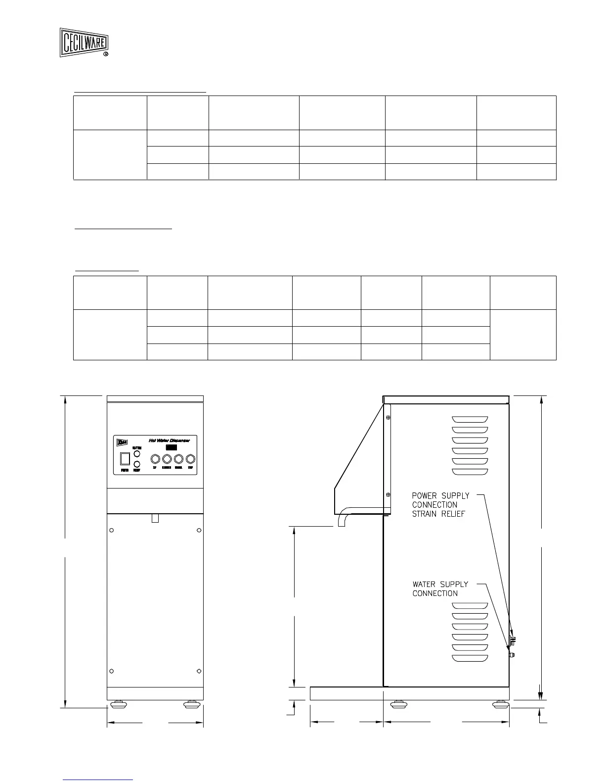 Heat-up time and Dispense rate based on Inlet water temperature at 68°F and