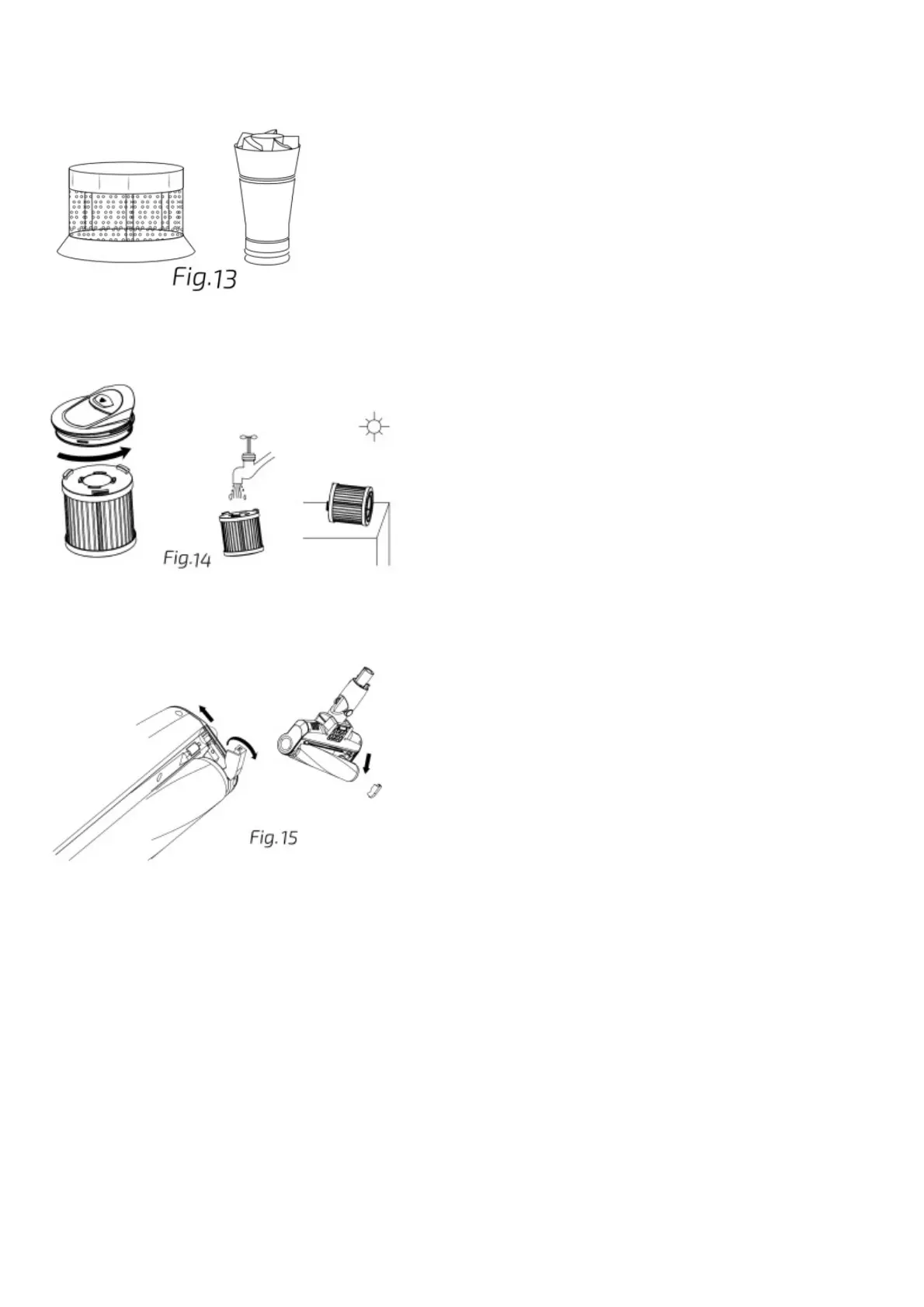 Note: Do not use cleaning agents. Use clean and room temperature water only. Do not use the vacuum cleaner to vacuum water.