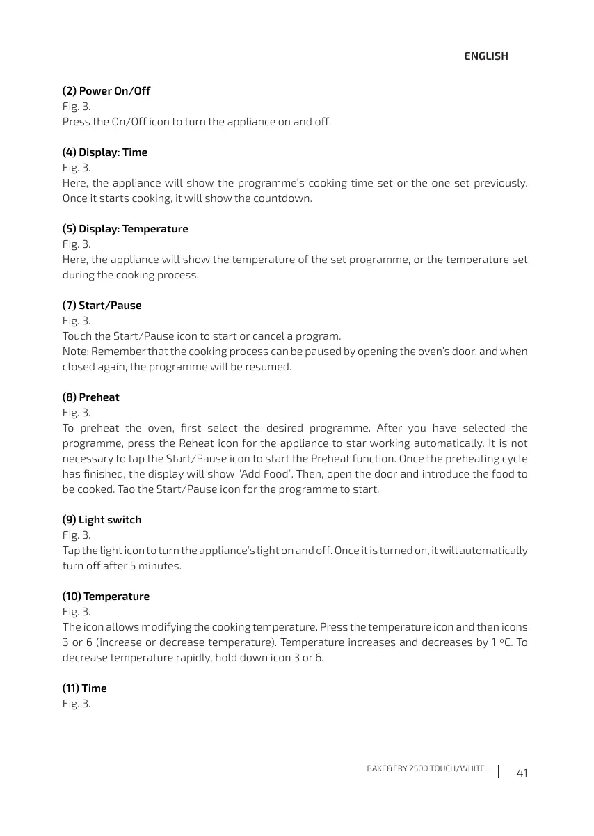Here, the appliance will show the programme’s cooking time set or the one set previously.