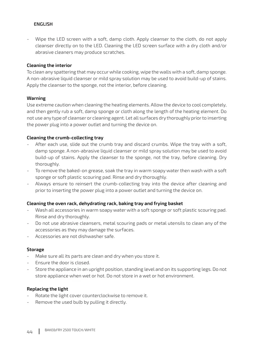 - Always ensure to reinsert the crumb-collecting tray into the device after cleaning and
