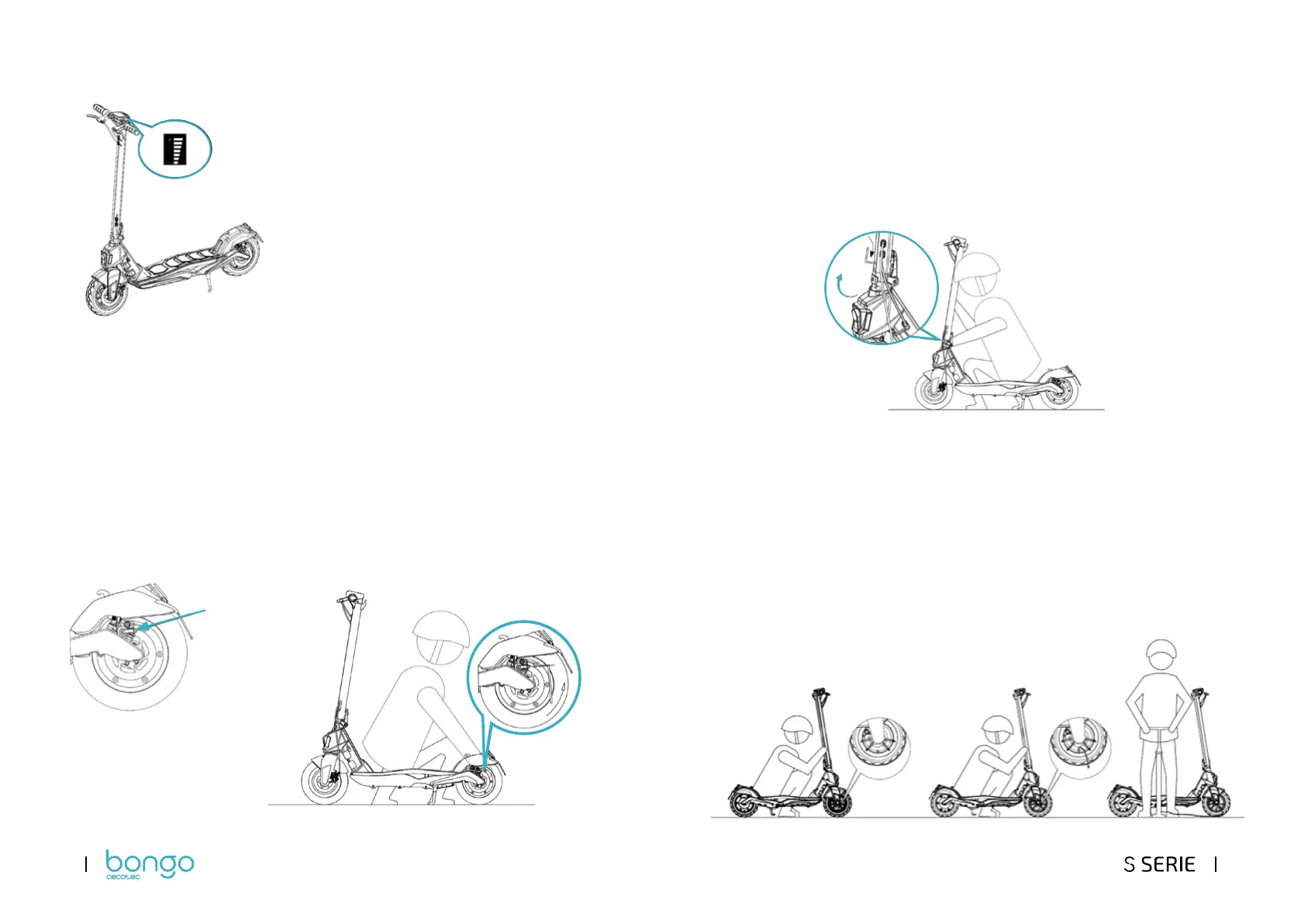 2. Wejdź na hulajnogę aby sprawdzić odległość między kierownicą a hamulcem.