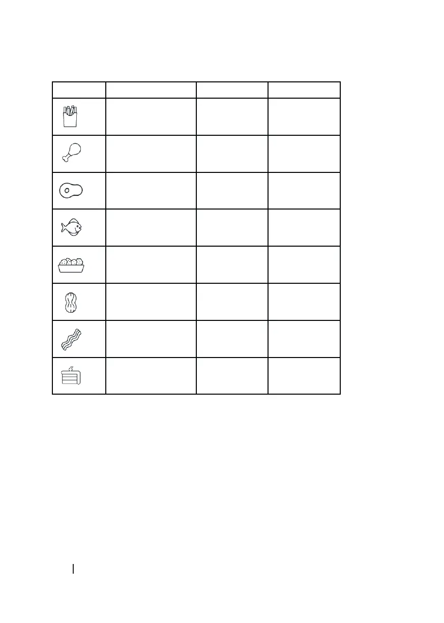 ícone Nome Temperatura (ºC) Tempo (min)