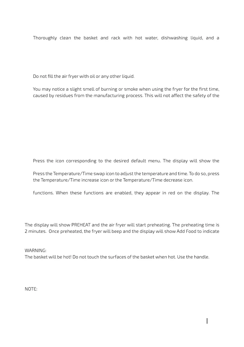 If you do not remove the basket, the appliance will start the cooking time after 5 seconds.