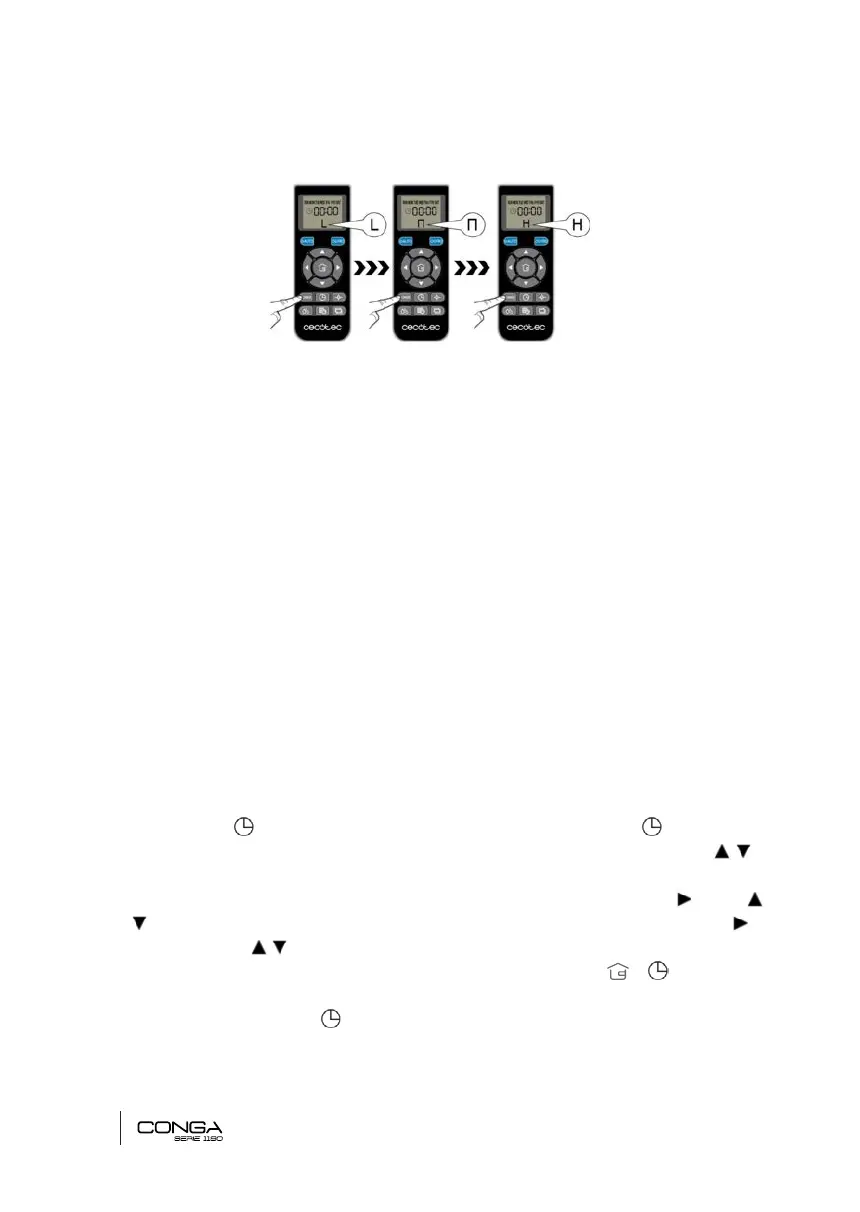 para seleccionar la hora deseada. Repita esta acción con los minutos: pulse y