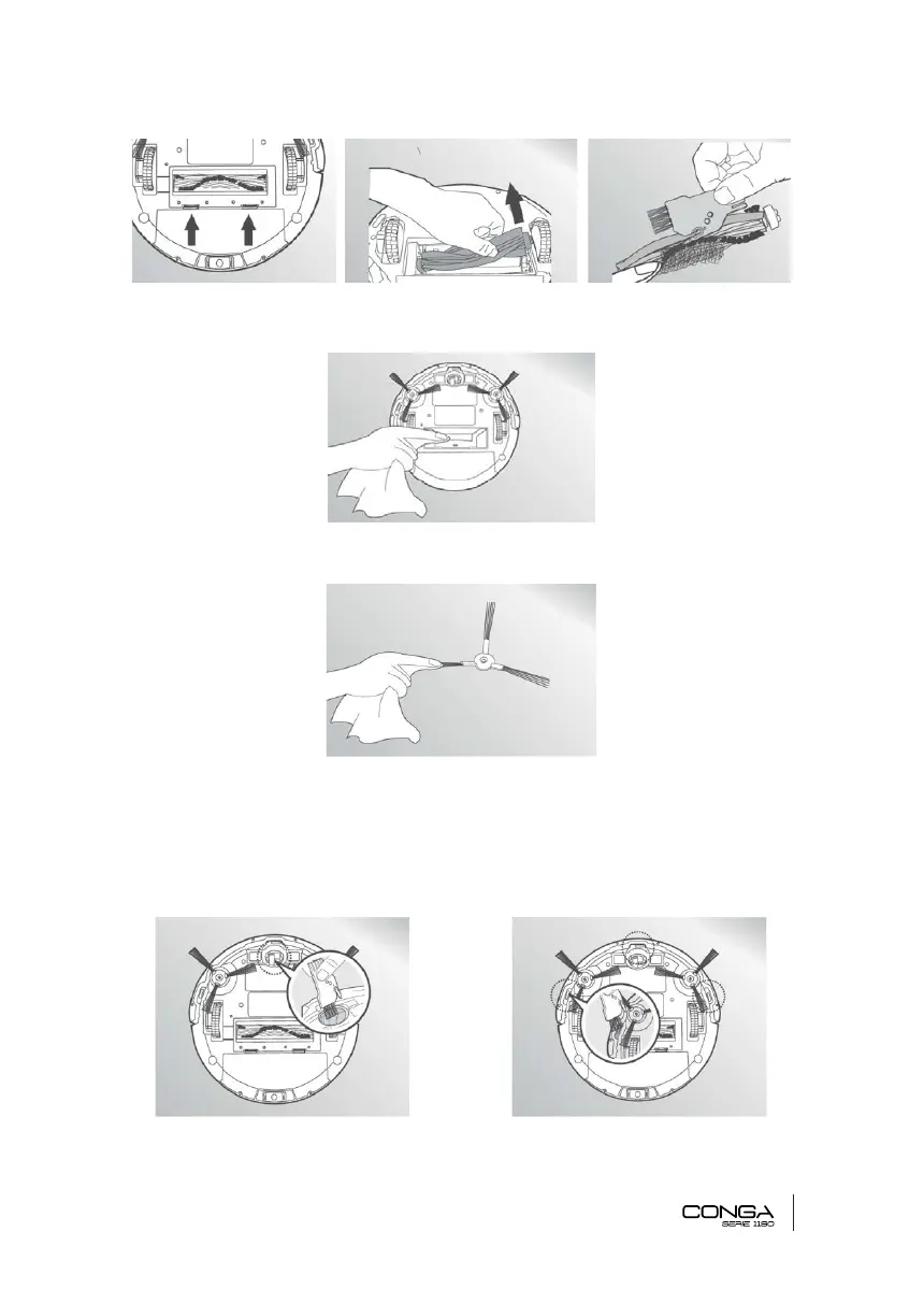 3. Retire los cepillos laterales del robot y utilice un paño para limpiarlos.