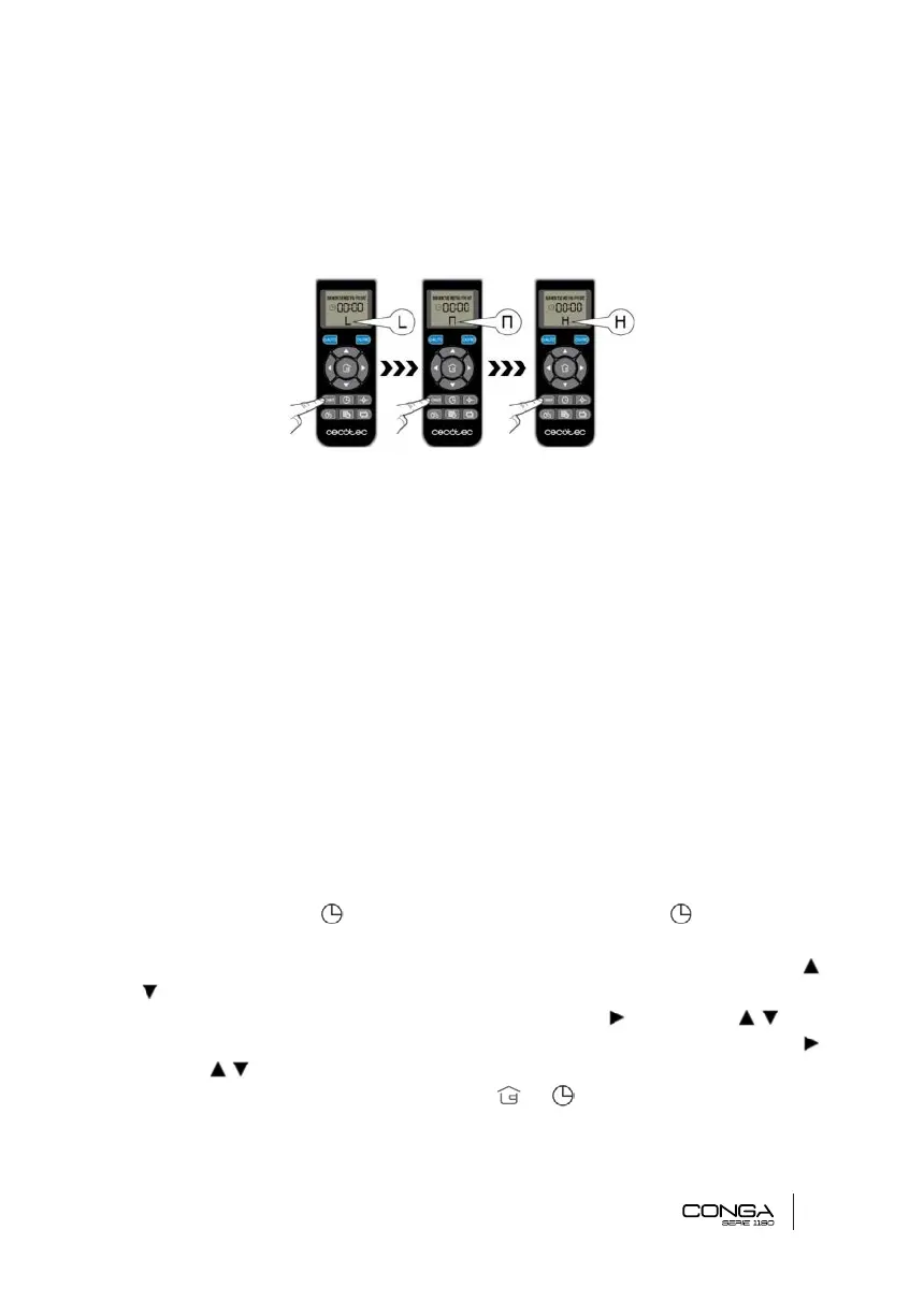 La puissance de succion peut être ajustée grâce à la télécommande. Appuyez sur le bouton de