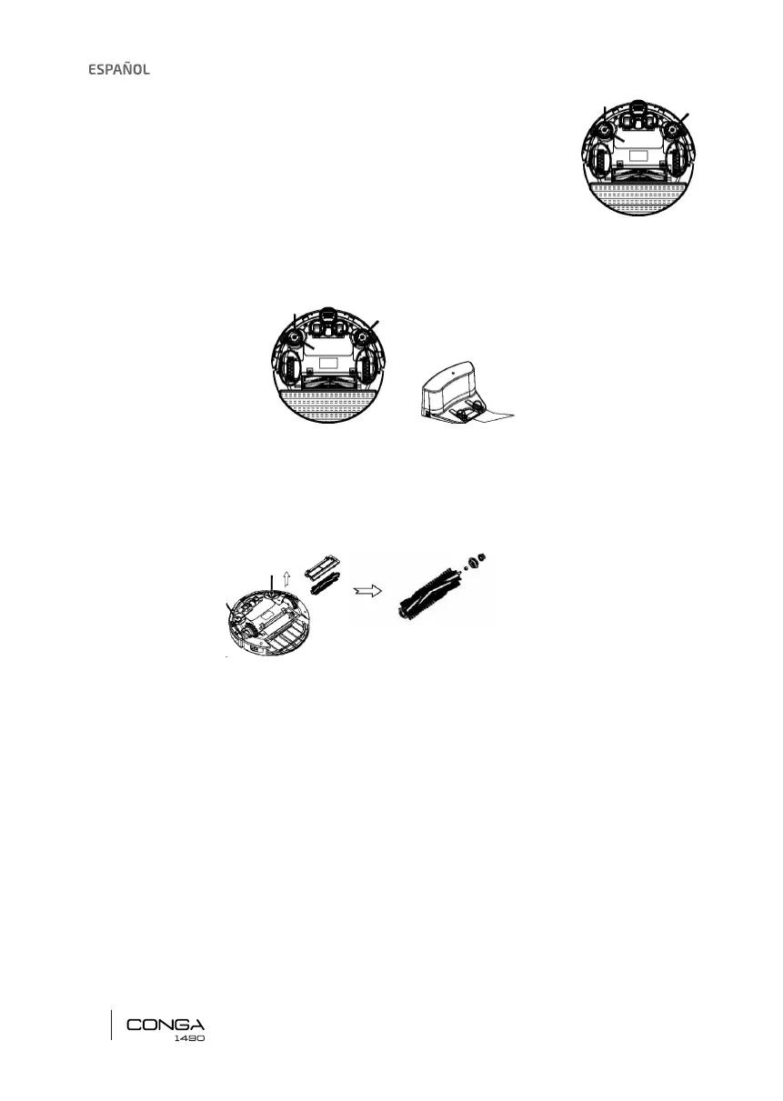 • Utilice un paño suave y húmedo para limpiar los bornes de carga del robot y de la