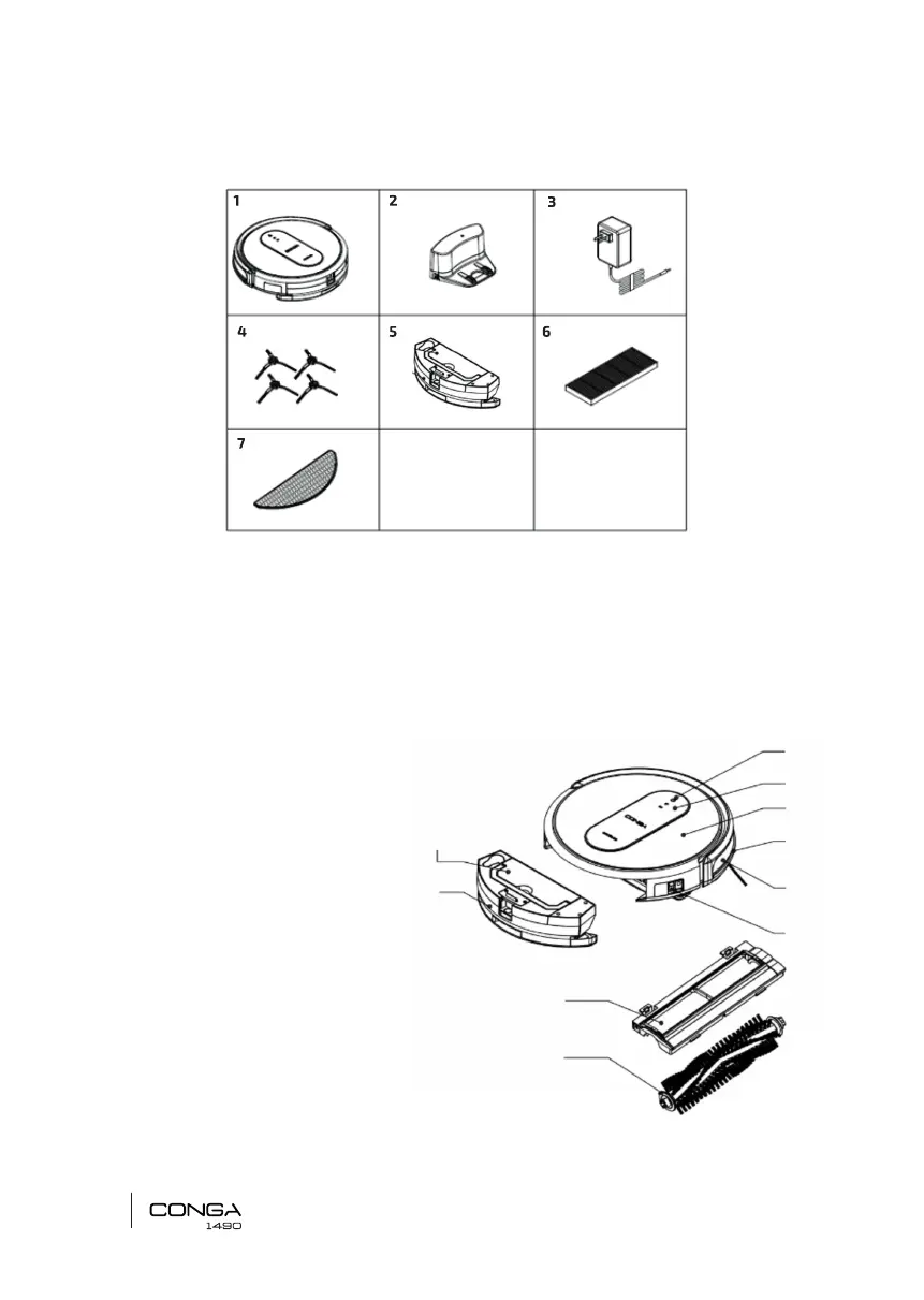 cecotec Conga 1490 - Parts and Components; Robots Main Body Components; Optional Accessories