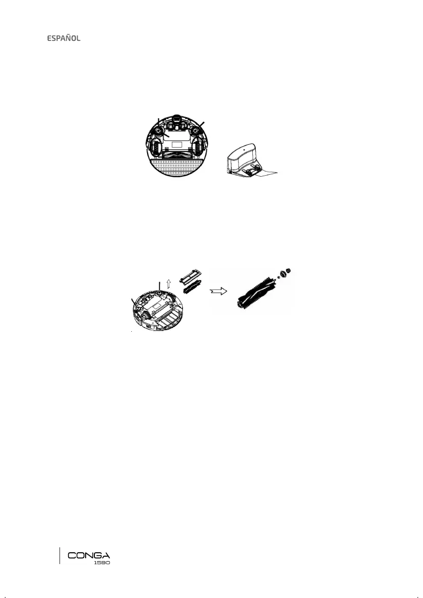 • Utilice un paño suave y húmedo para limpiar los bornes de carga del robot y de la