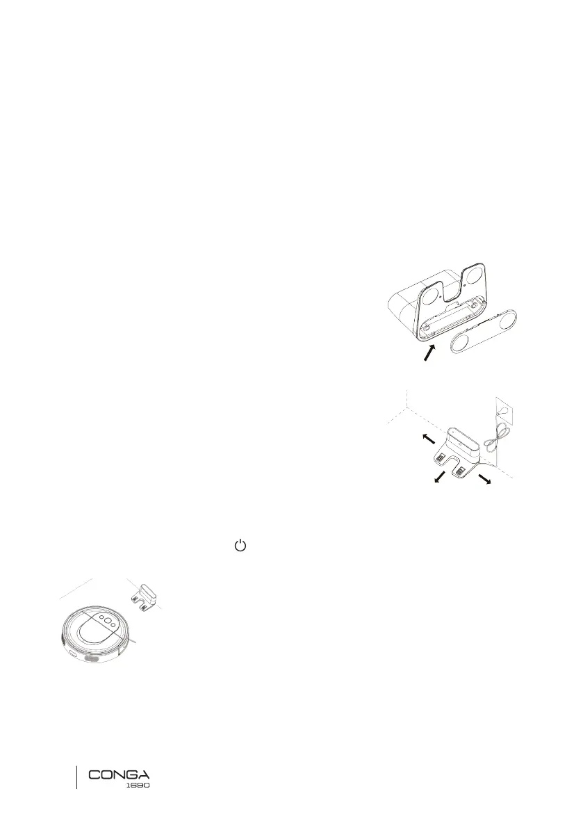 2. Placez la base de charge contre le mur en laissant la distance de sécurité indiquée sur