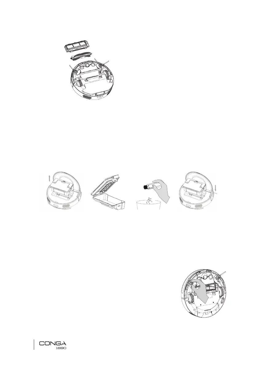 4. Introdurre di nuovo il serbatoio dello sporco nel robot e chiudere il coperchio superiore.