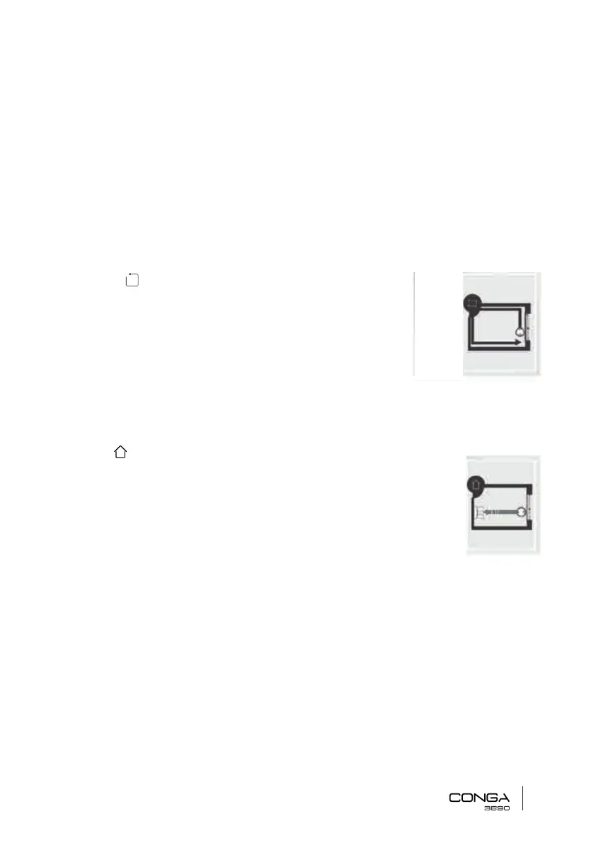 Als de robot klaar is met schoonmaken of als het batterijpercentage laag is, dan zal de robot