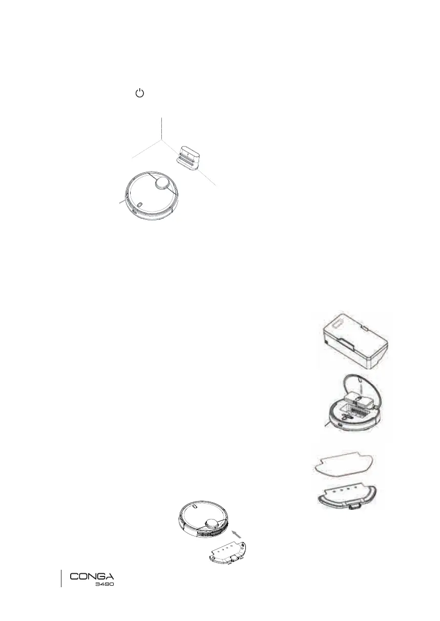 • The robot will automatically turn on when placed on the charging base.